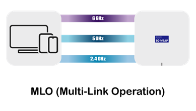 MLO(Multi-Link Operation)に対応することで、複数周波数帯を同時利用可能となり、より安定した通信環境を構築できます。